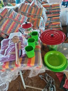 - Kits de cocina y descanso: toldillos, colchonetas, ollas, utensilios básicos de cocina, entre otros.